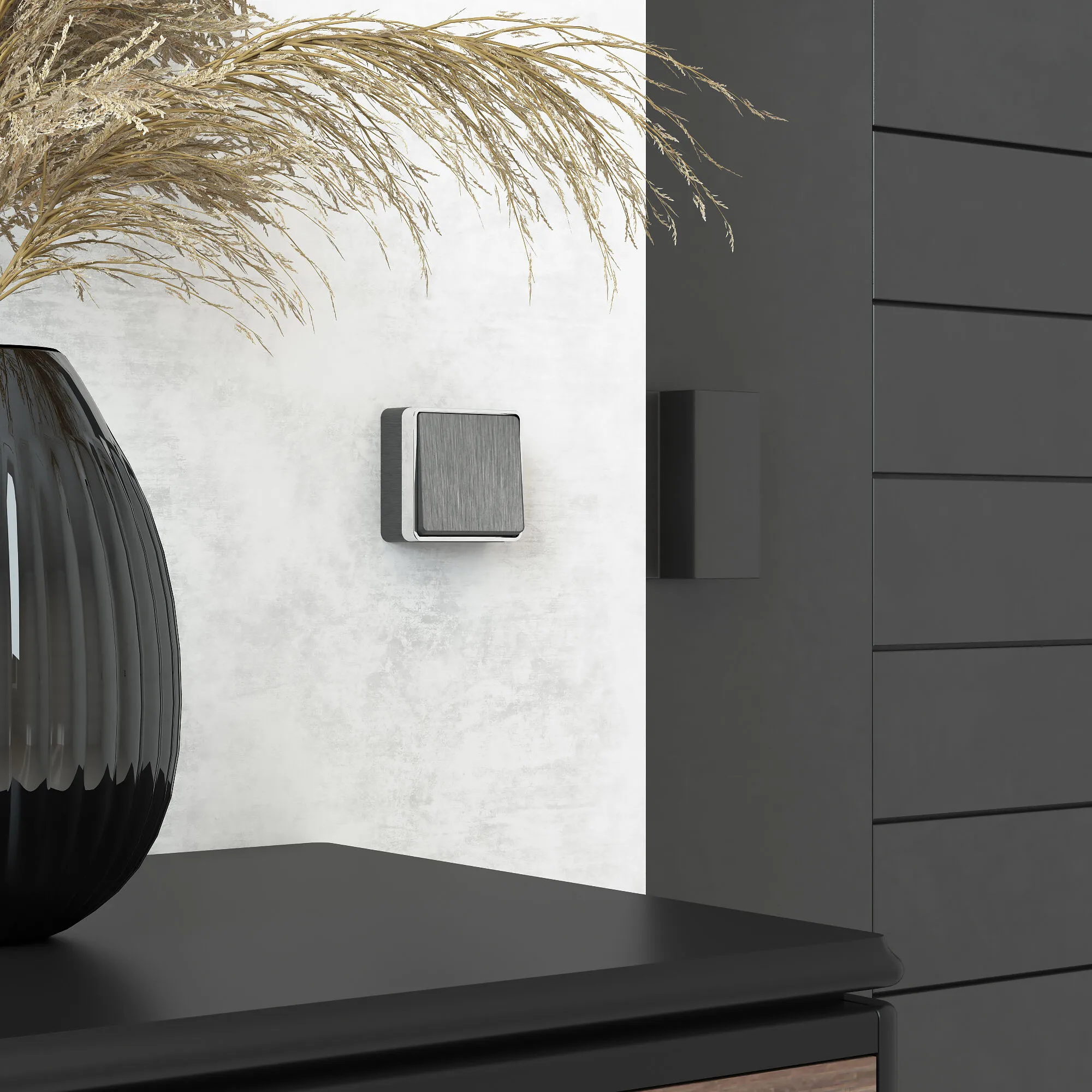 • Стильный дизайн : Графитовый цвет и лаконичный внешний вид делают выключатель универсальным решением для любого интерьера – от классики до современного минимализма.