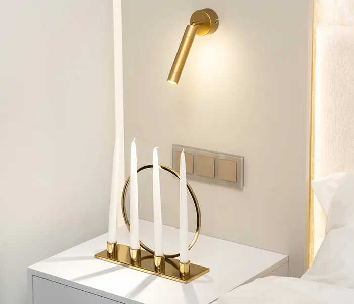 Стильным акцентом интерьера стали рамки серии Favorit в белом и дымчатом цветах. Они выполнены из закалённого стекла толщиной 4 мм с идеально отшлифованной фаской, что гарантирует безопасность и долговечность . Механизмы в цвете «шампань рифлёный» гармонично вписались в современный дизайн, подчеркнув эстетику проекта.